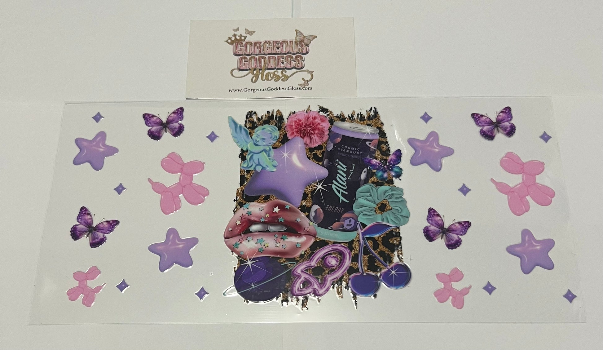 This listing is for one (1) unweeded adhesive cup wrap/decal. Glass and transfer tape are not included.