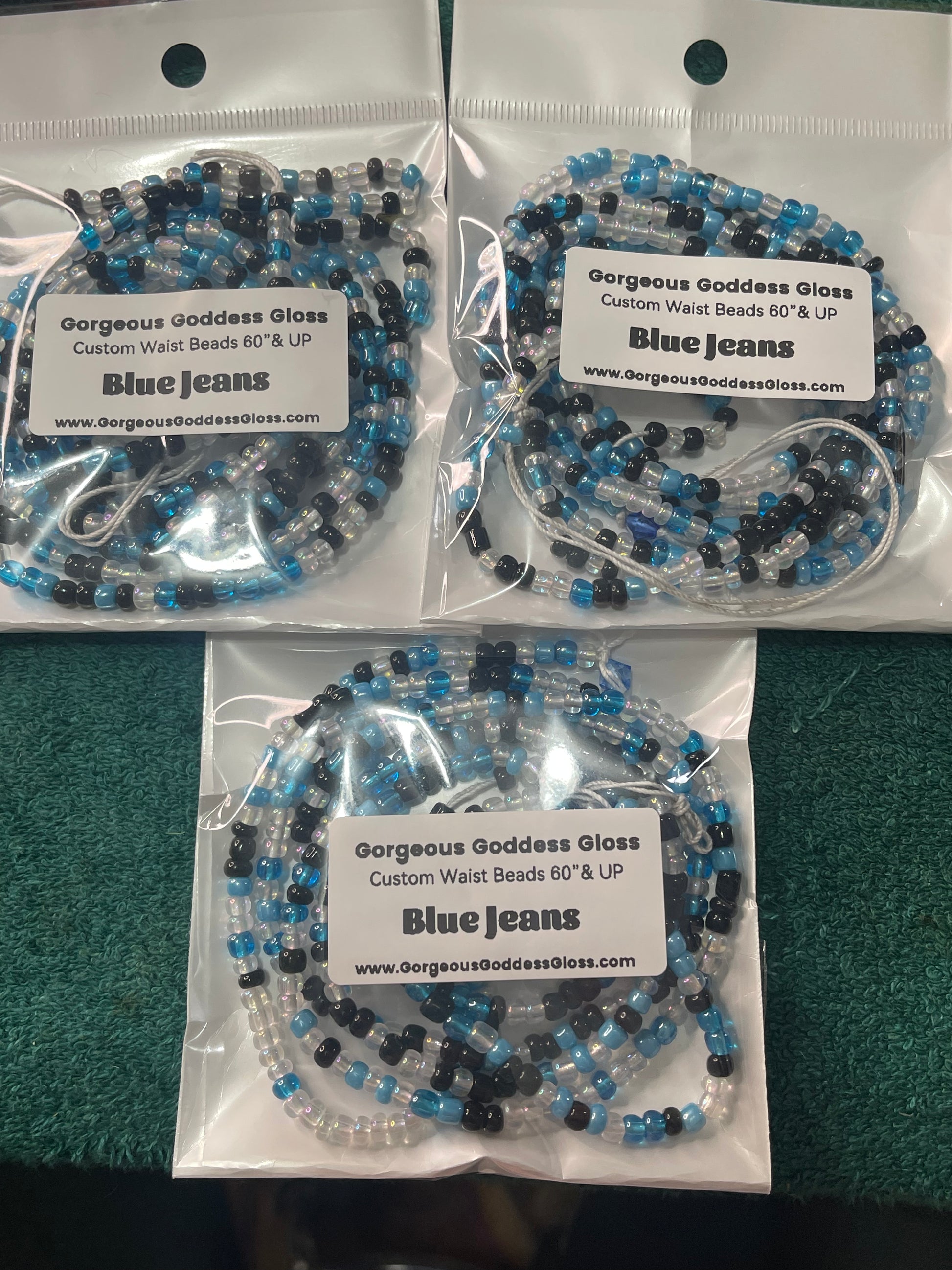 Blue Jeans custom Waist-bead Gem Tie on waist beads (Add 4 one will be FREE
