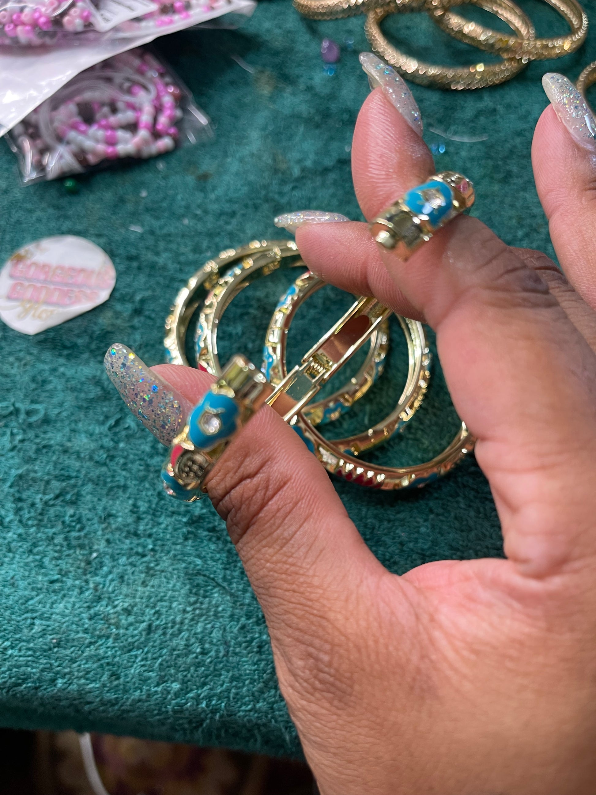 Red & Blue Flower open bangle