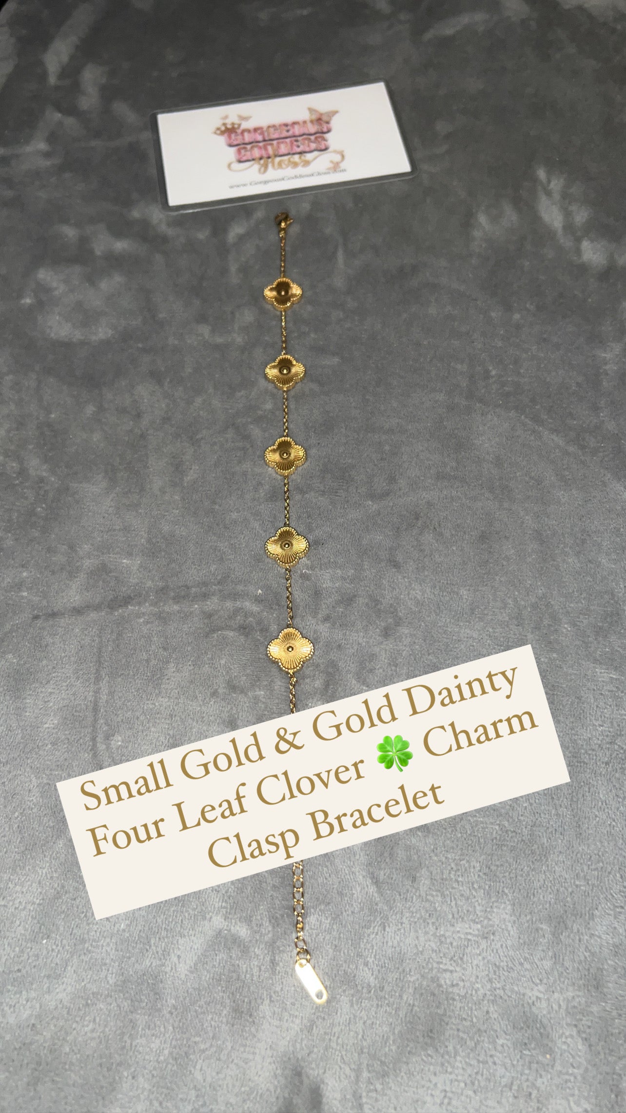 Small Gold & Gold Dainty Four Leaf Clover 🍀 Charm Clasp Bracelet
