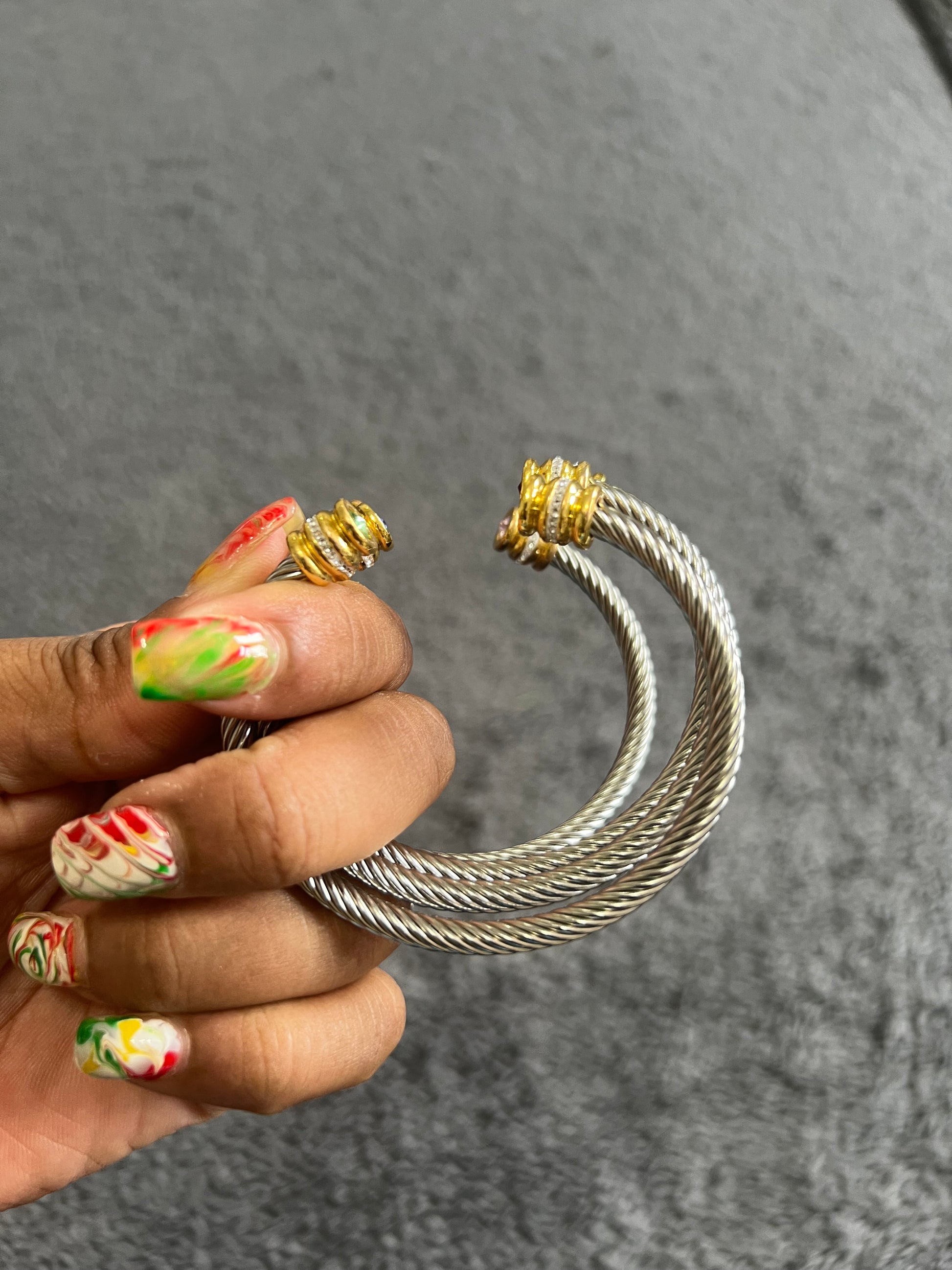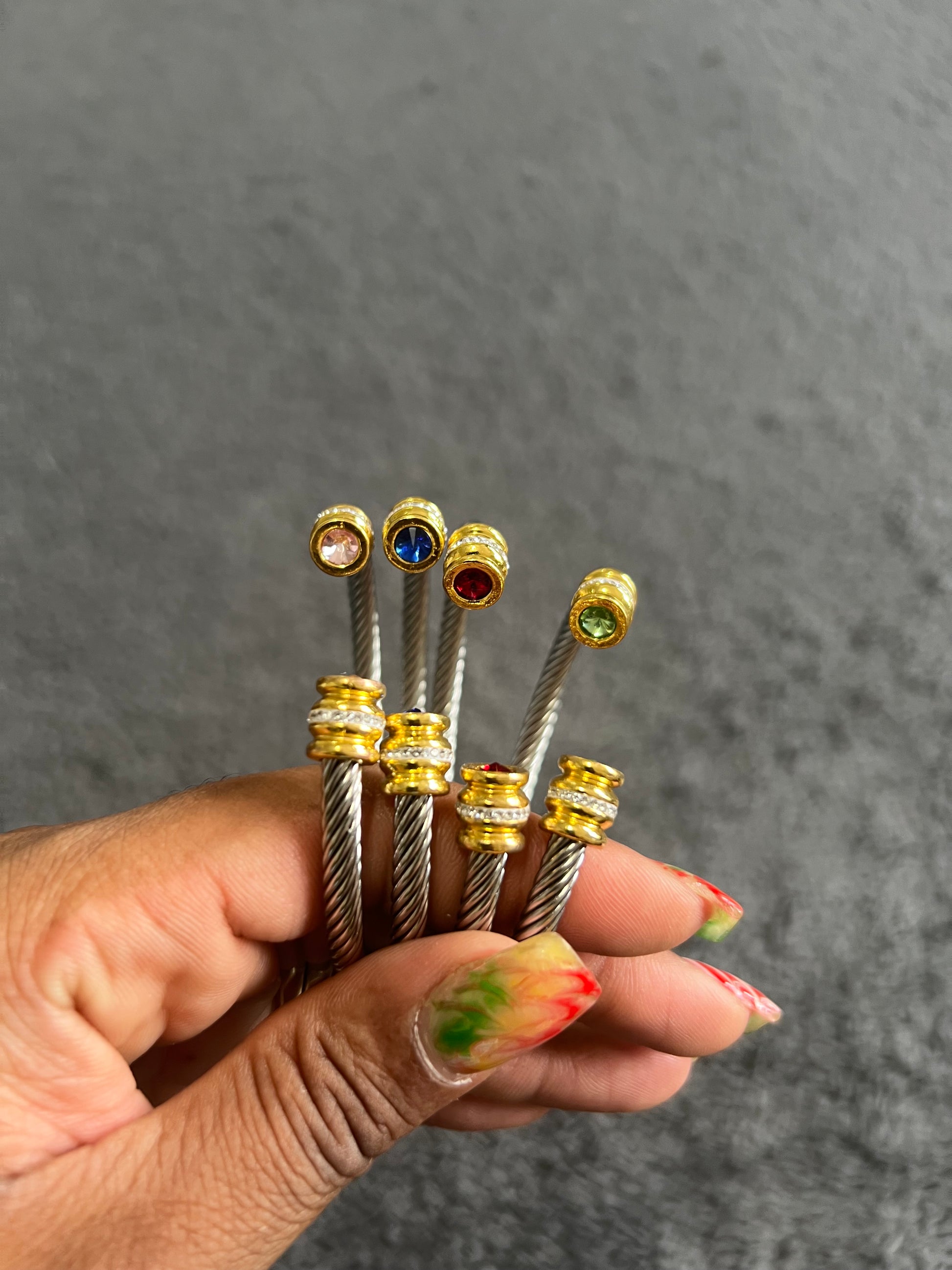 Zodiac Birthstone Cable Wire Rhinestone Decorated Stainless Steel Cuff Bracelet